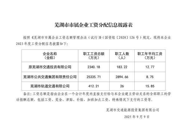 蕪湖市市屬企業(yè)工資分配信息披露表